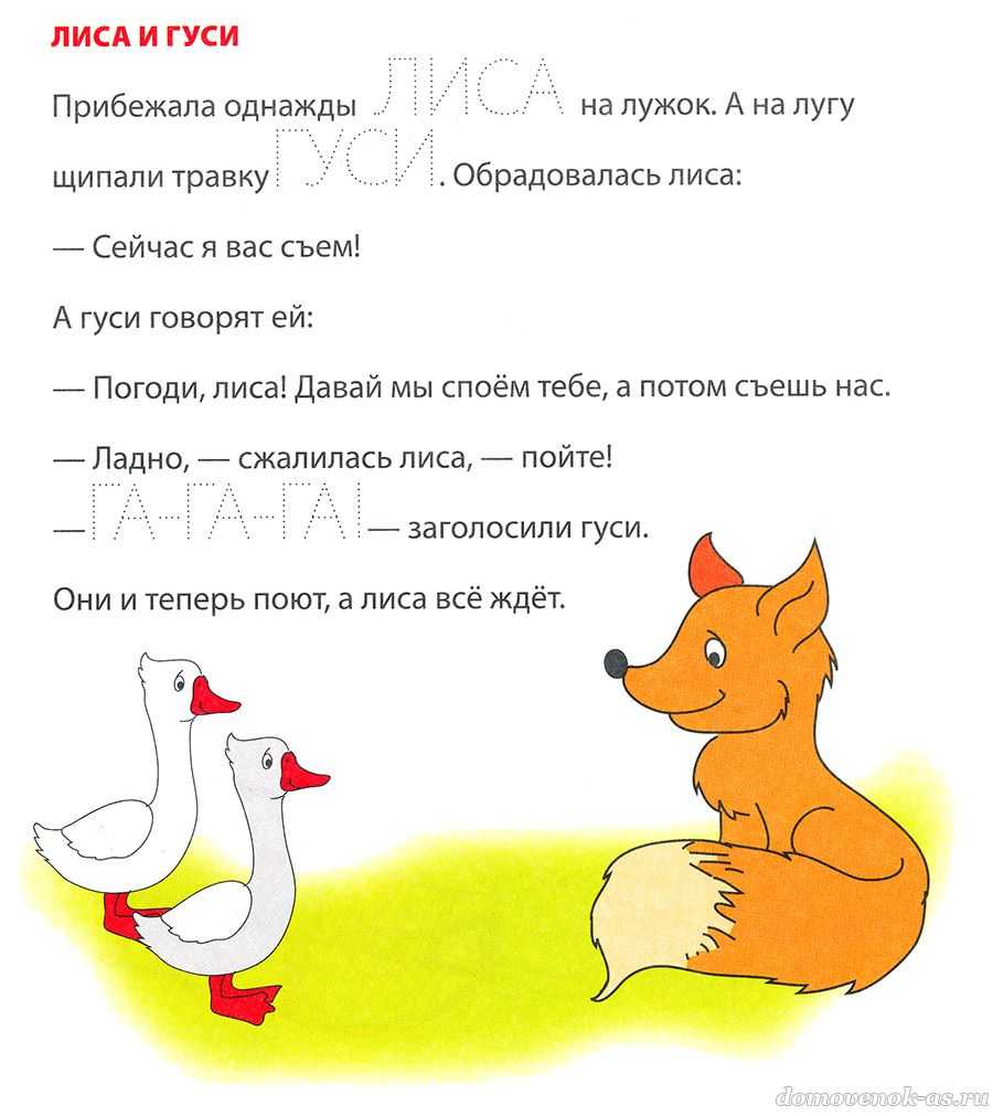 №18. Прочитай сказку про лису и хитрых гусей и обведи слова, написанные пунктиром.