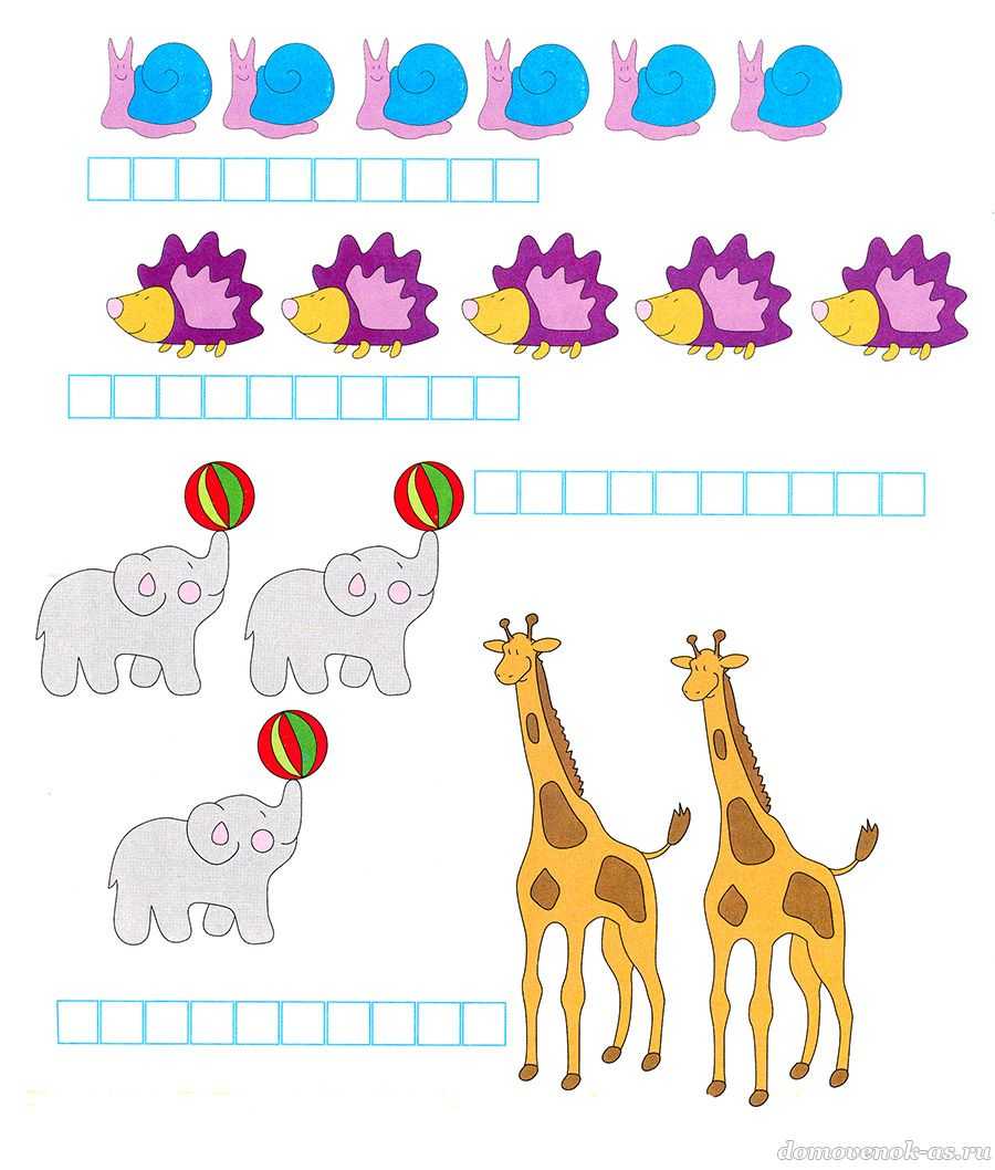 №3. Сосчитай предметы в каждой группе и раскрась столько же клеточек.