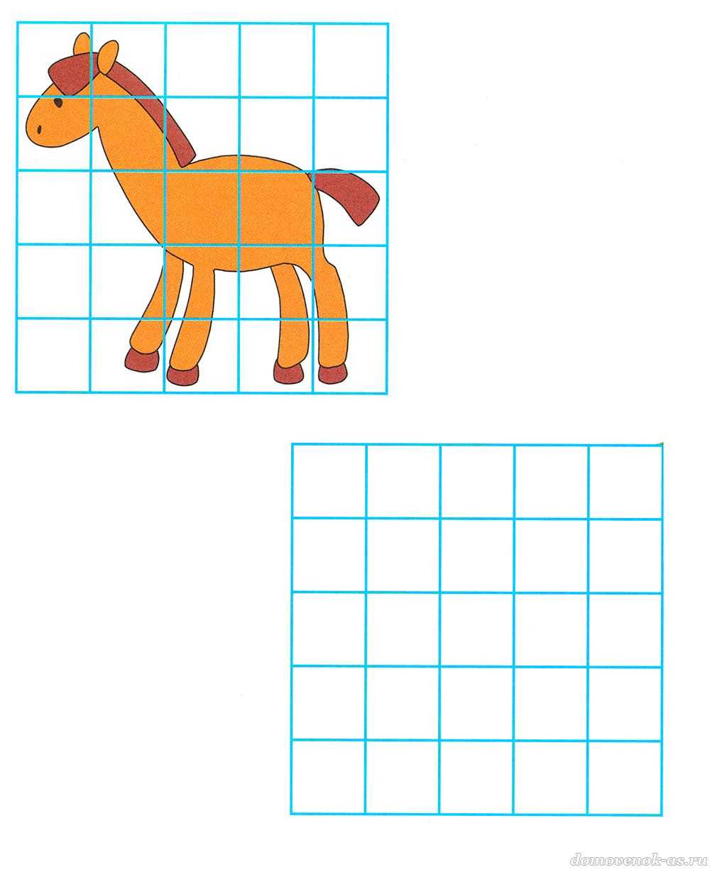 №9. Попробуй нарисовать жеребёнка по клеточкам.