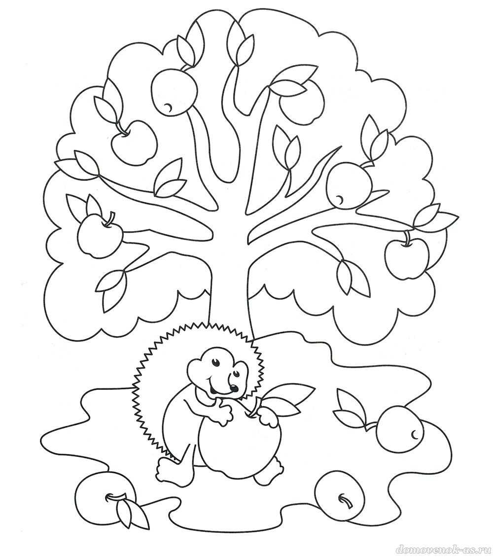 №7. Раскрась картинку, а потом сосчитай на ней все яблоки.