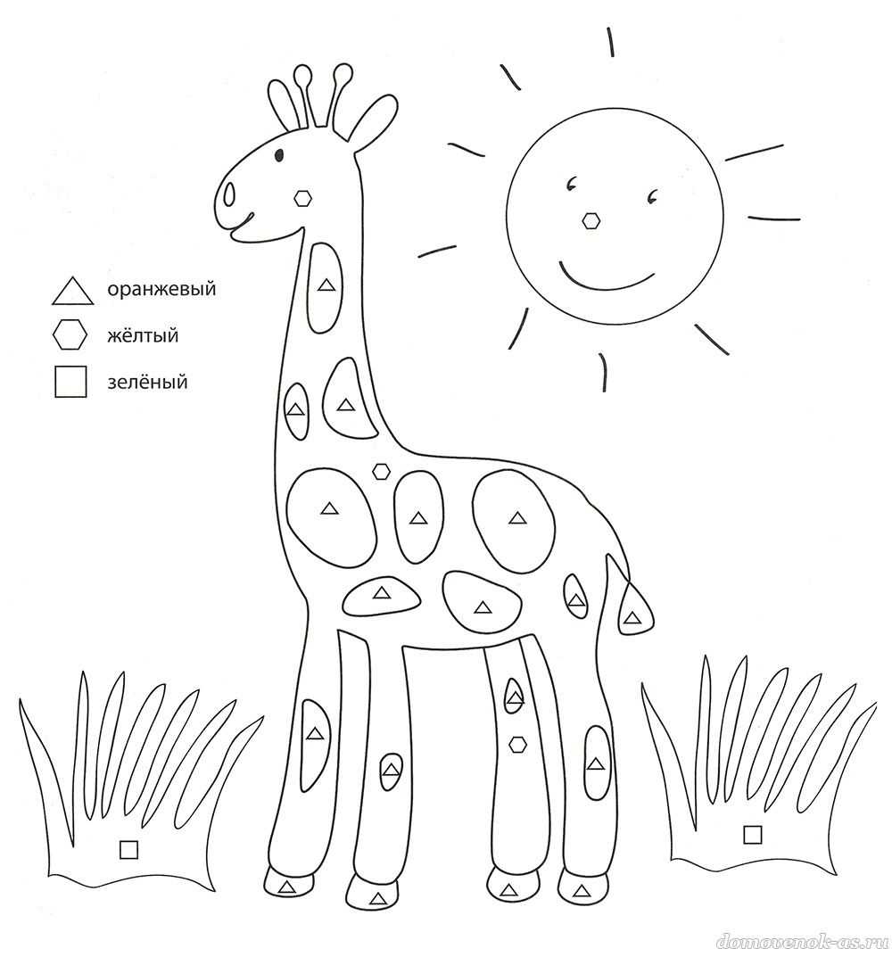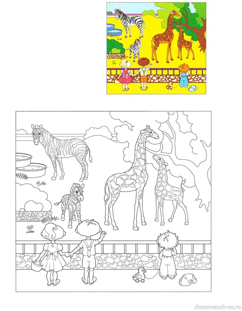 №30. А ты мечтаешь сходить в зоопарк? Раскрась картинку по цветному образцу.