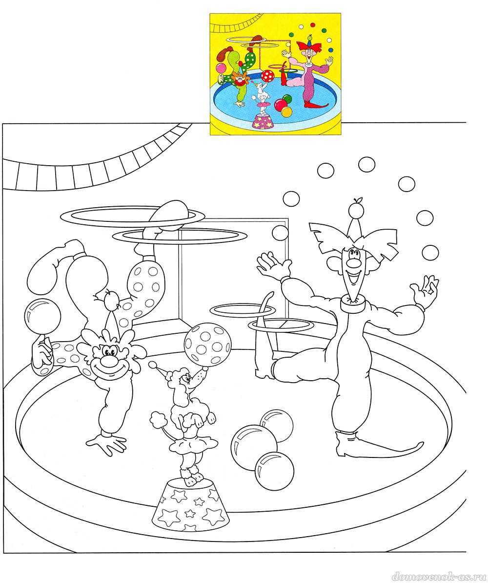 №17. Ура, цирк приехал! Раскрась весёлых клоунов по цветному образцу!