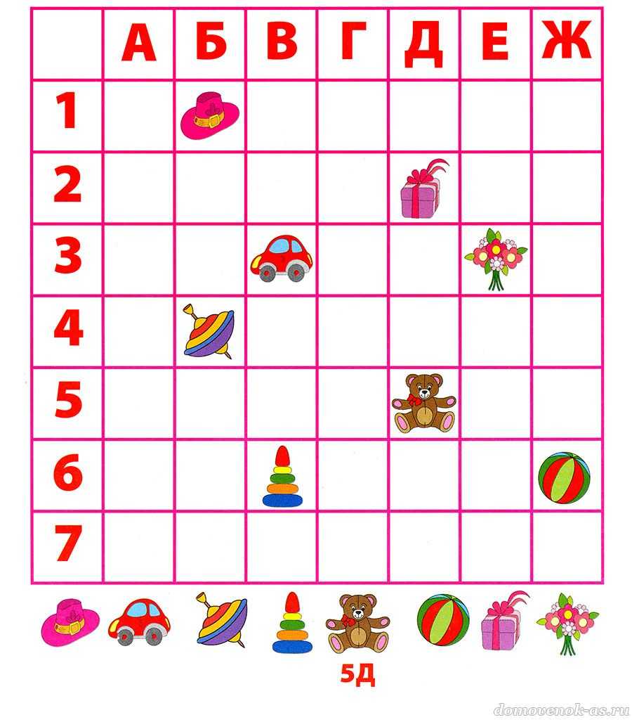 №23. Внимательно посмотри на таблицу и определи координаты каждого предмета так же, как это сделано для медвежонка.