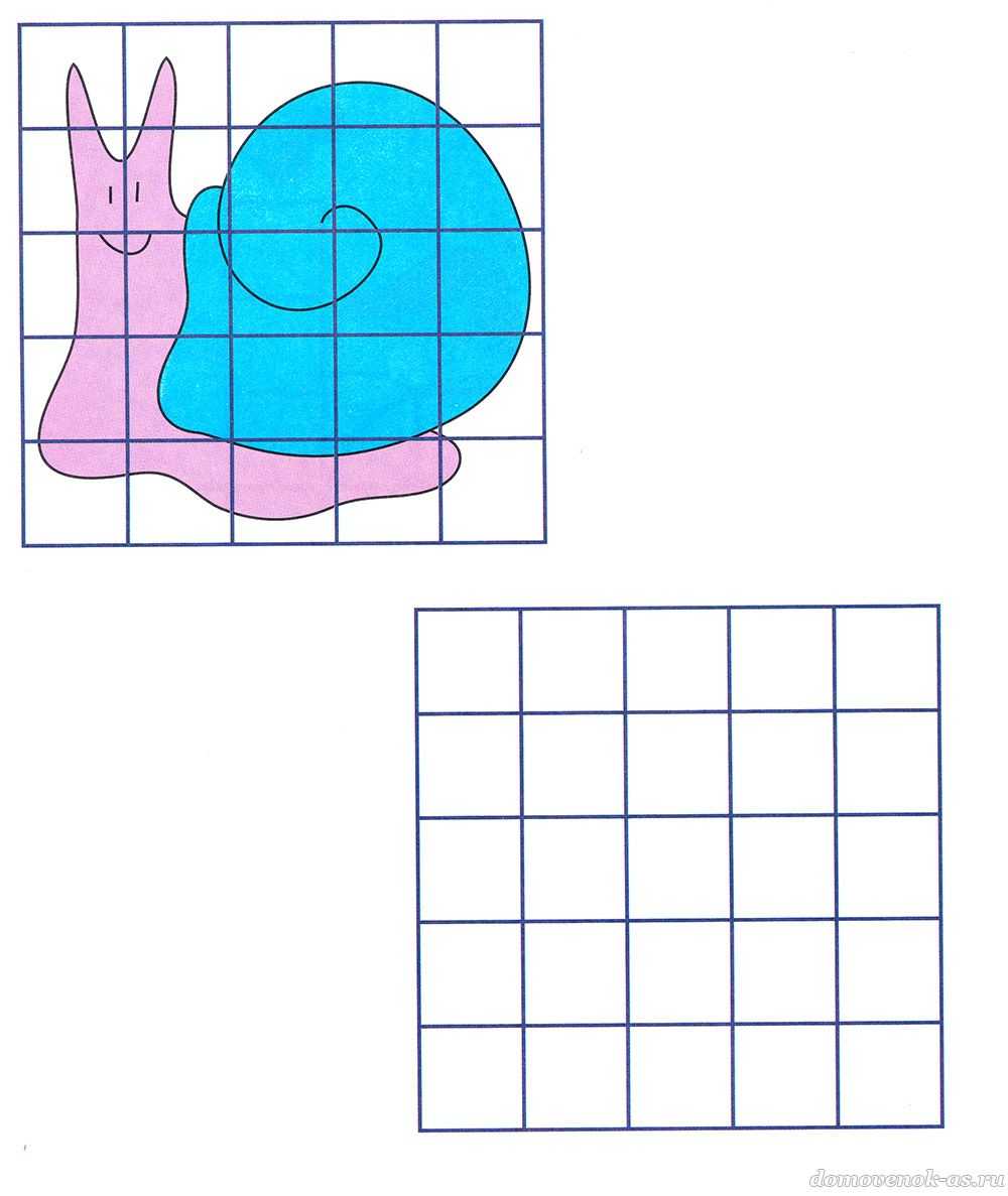 №12. Попробуй нарисовать улитку по клеточкам.