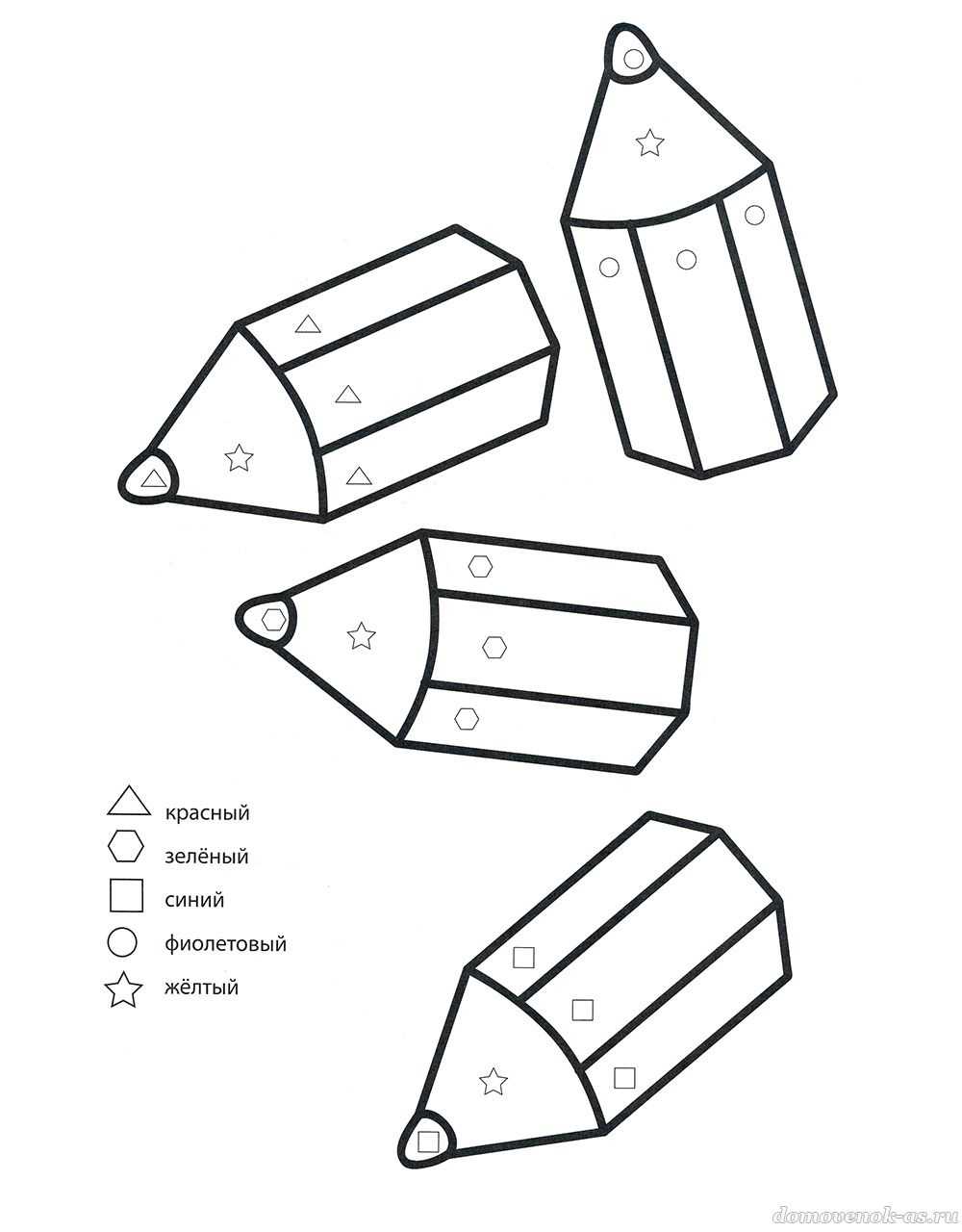 №5. Раскрась карандаши в разные цвета, используя значки-подсказки.
