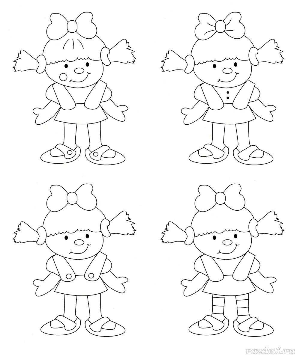 №10. Дорисуй девочек так, чтобы они стали одинаковыми.