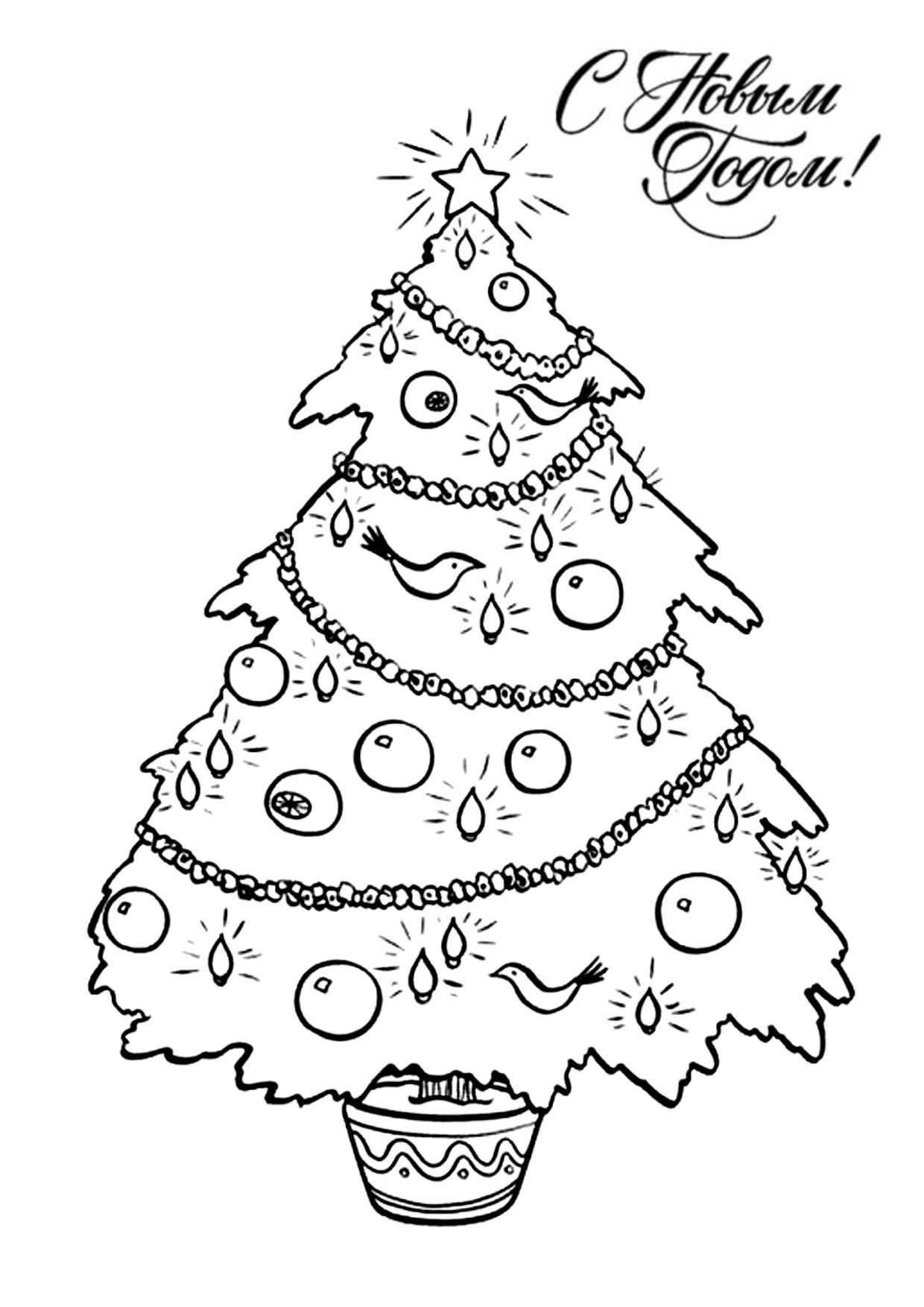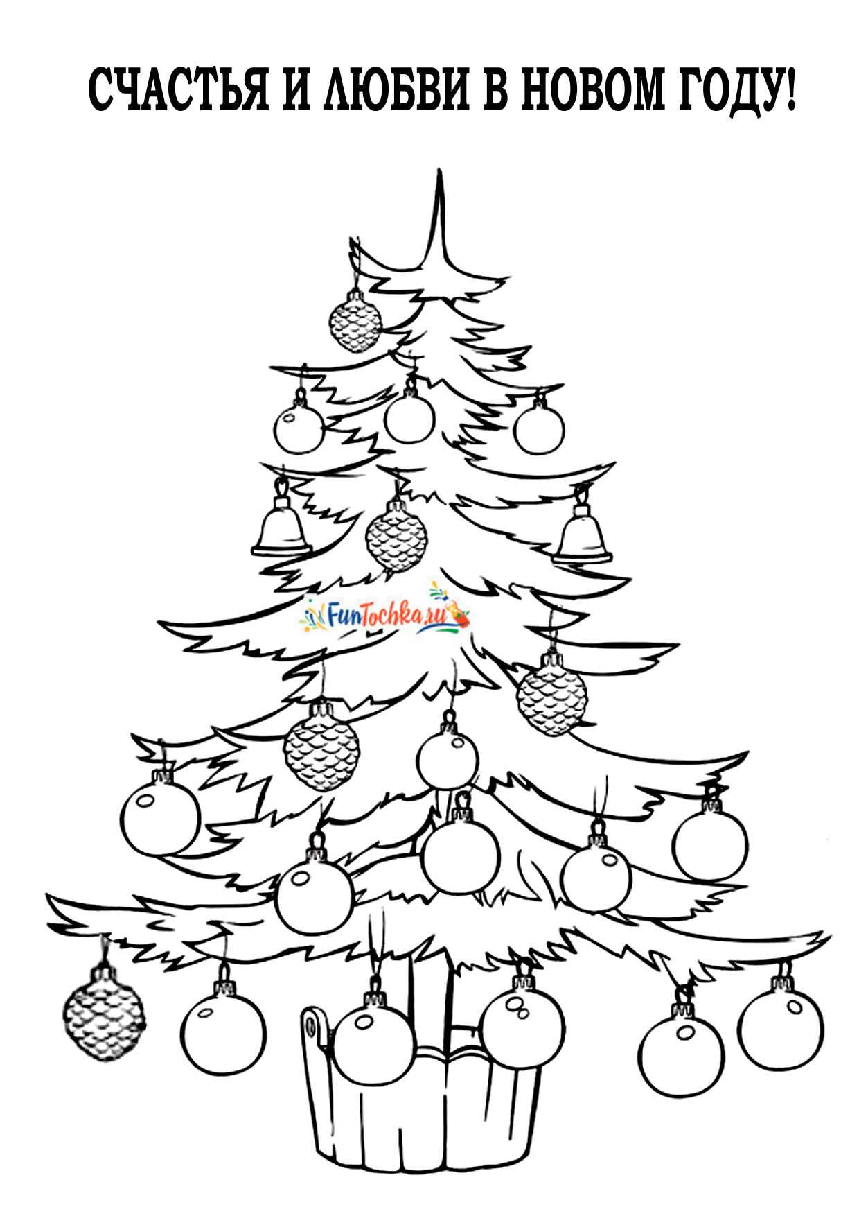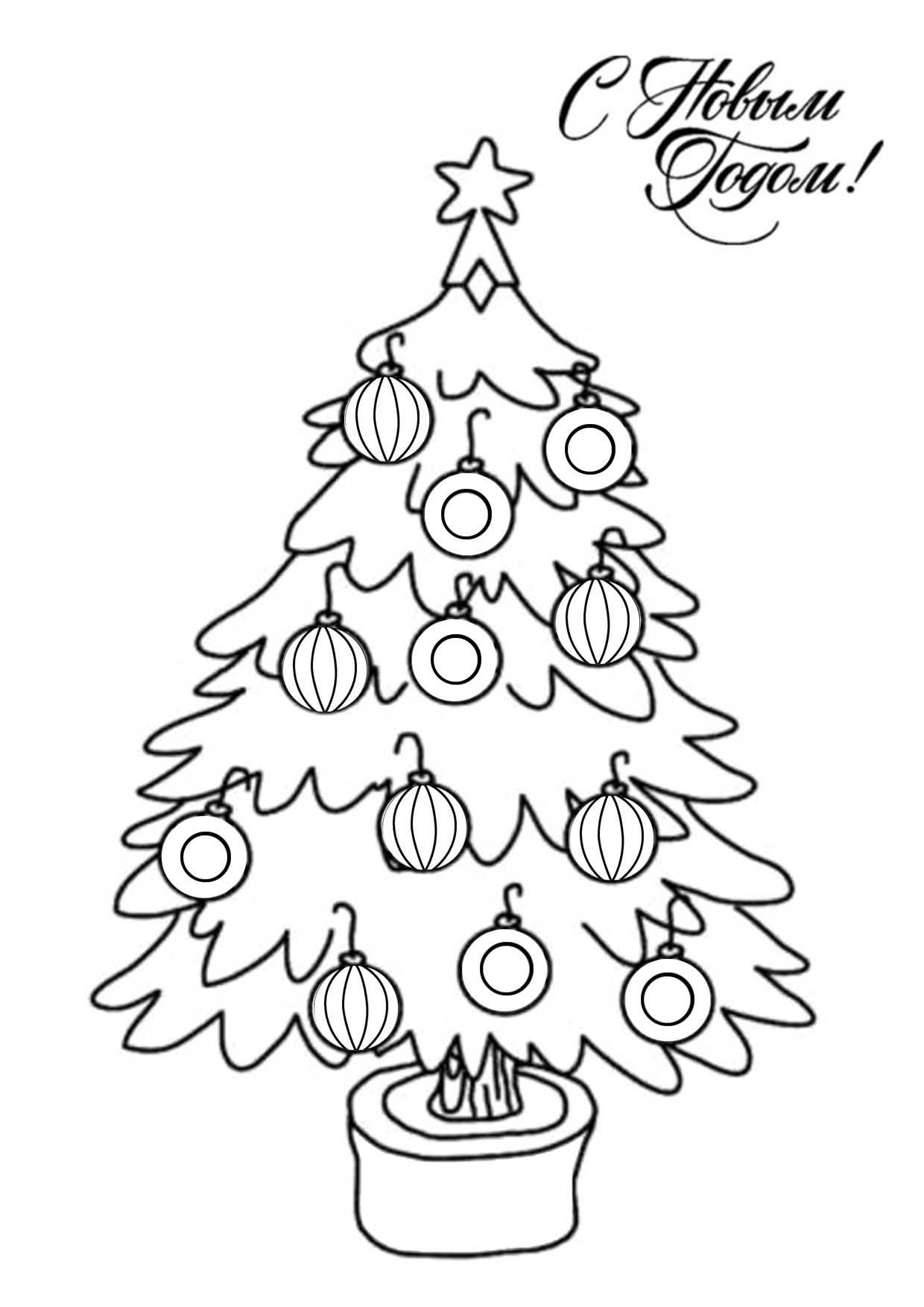 Эта красавица с простыми шарами и ностальгическими шишками ждет вашего внимания: распечатайте и раскрасьте вместе с детьми!