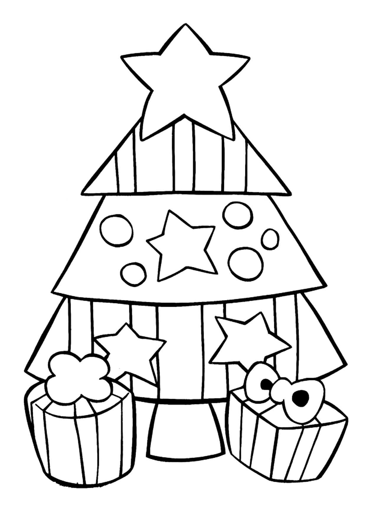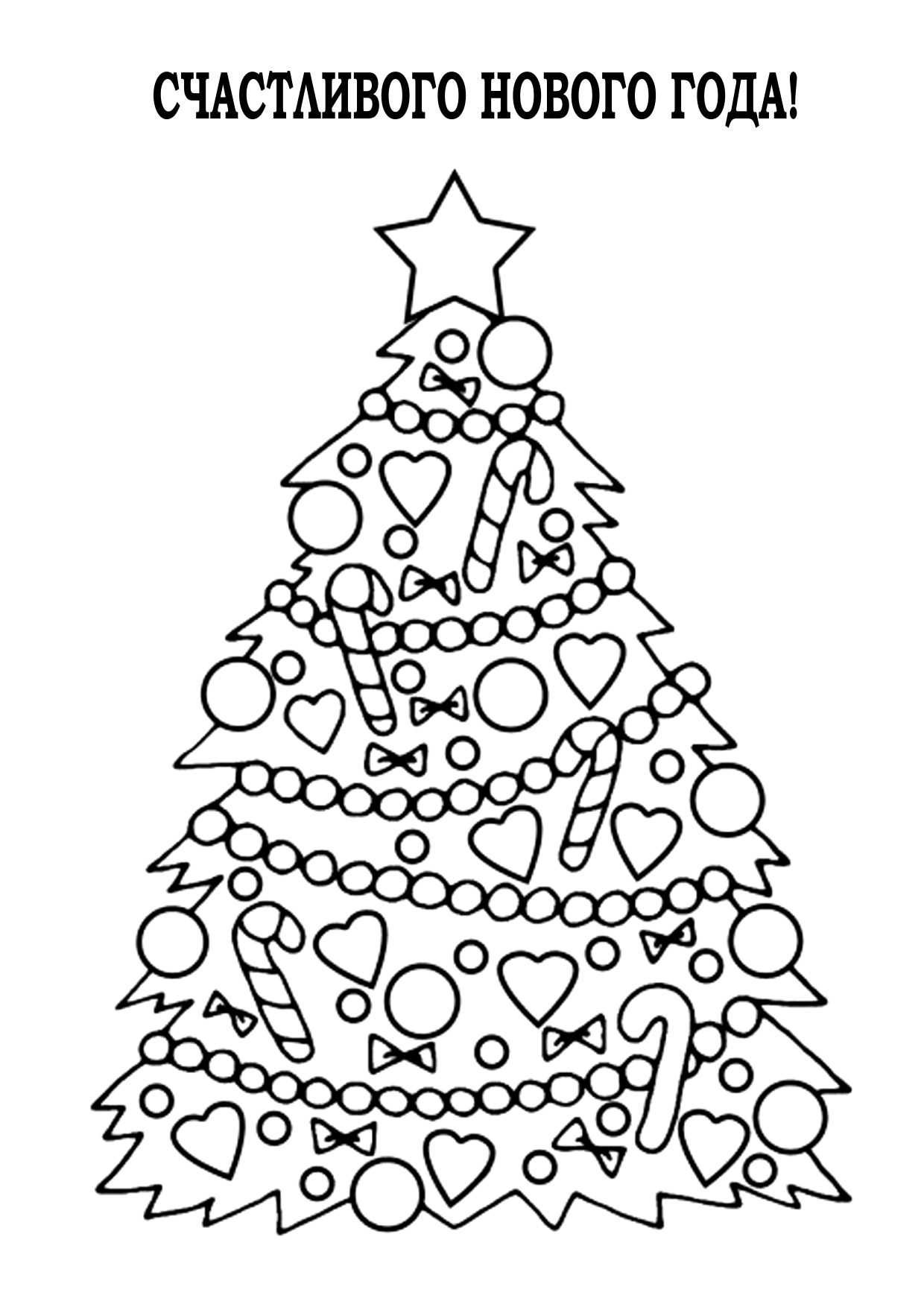 Новогодняя елка для детей с простыми формами и классической гирляндой из бусин. Понадобится терпение, чтобы закончить работу, зато раскраска получится очень насыщенной.