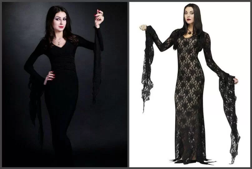 Достаточно подготовить длинное черное платье. Также должны присутствовать длинные черные волосы.