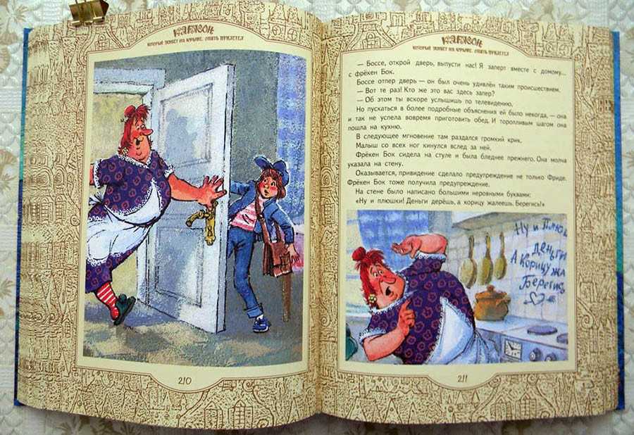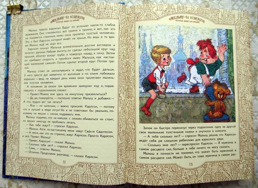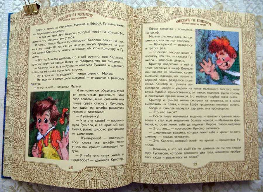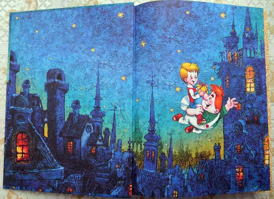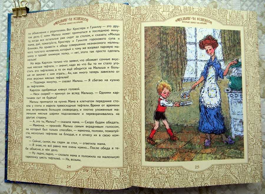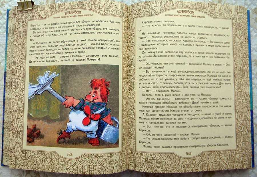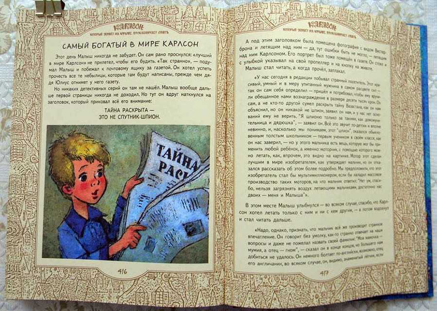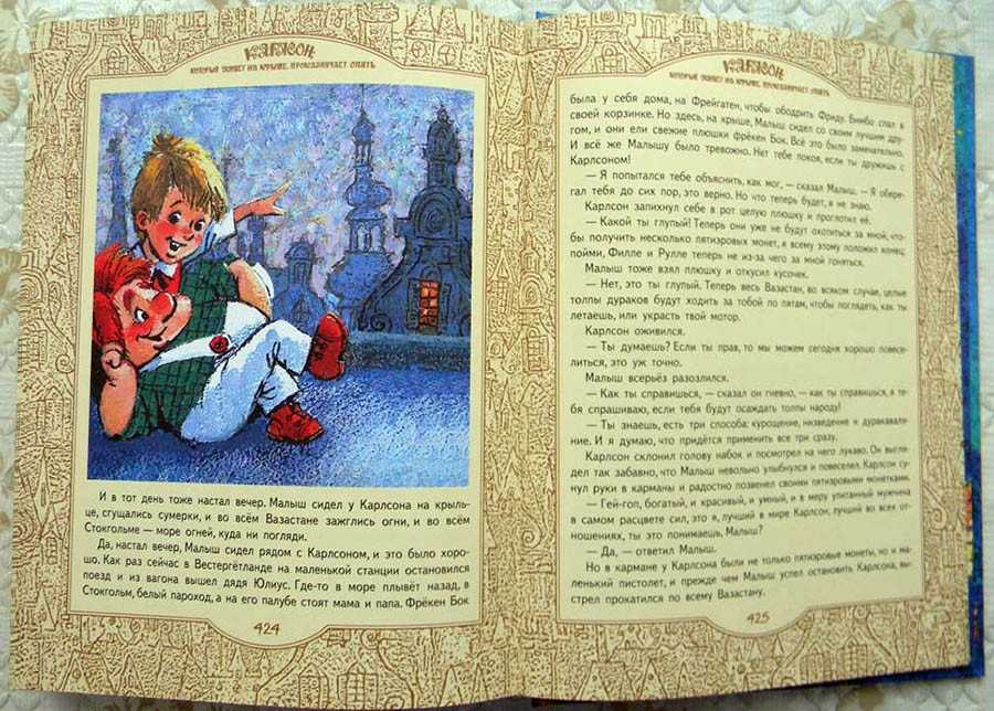 У моих племянников такая же толстая книга, как и у меня, что, однако, не помешала им в пятилетнем возрасте шустро таскать такую книгу за своими родителями с просьбой почитать. Может, у детей какая-то особая книготаскательная мышца развита? О_0Если полегче, то для ребятишек же можно взять книги поменьше (формат у них ближе к А4 — 262 см) — три части сказки про Карлсона в отдельных книгах: