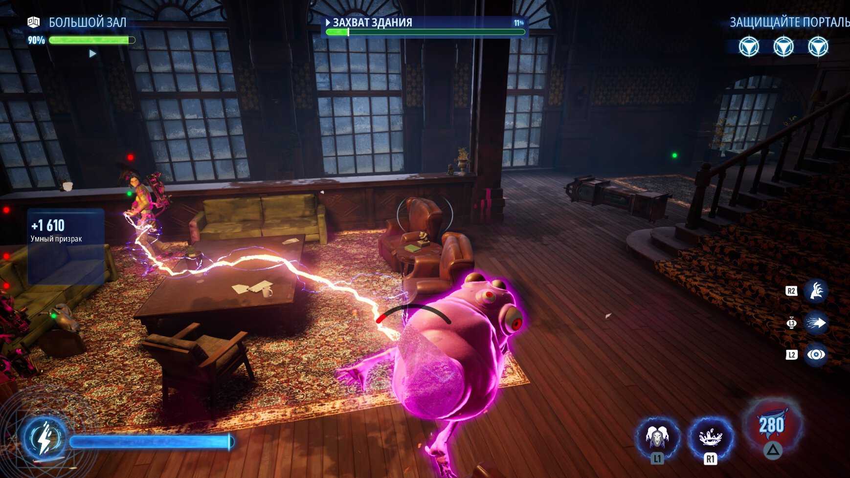 Приведение, которым тоже управляет реальный игрок, захватывает здание. Портит вещи, пугает людей, заражает комнаты – все это повышает шкалу хаоса. Когда она заполнится, порталы исчезнут, а монстру останется продержаться 90 секунд и не угодить в ловушку.