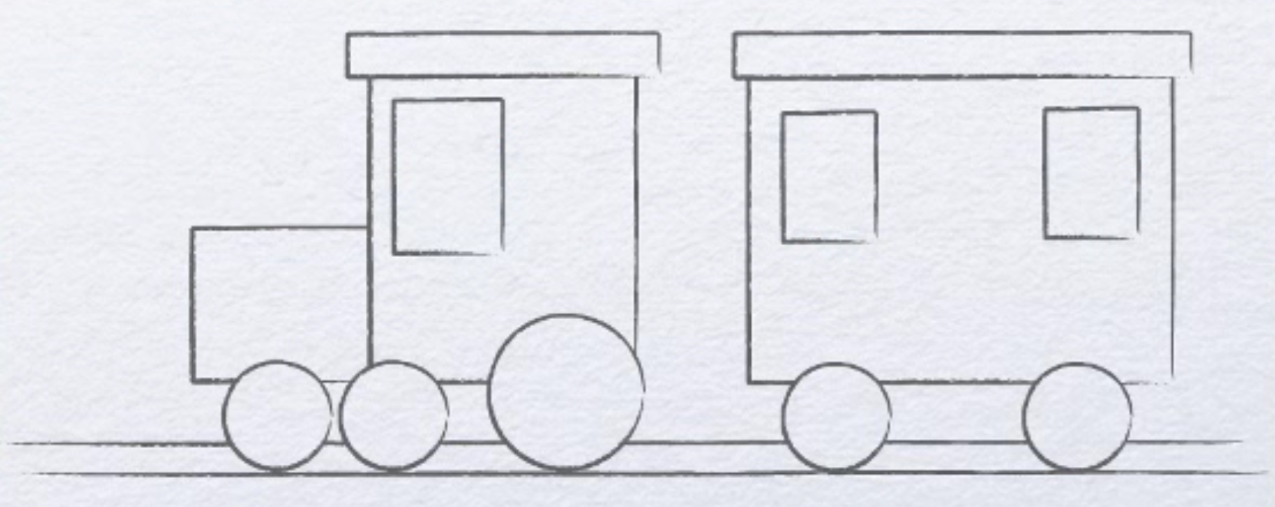 Рисунок будет начинаться изображением прямоугольных заготовок локомотива с вагоном.