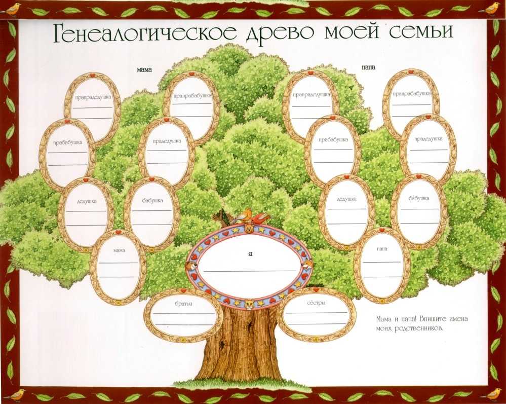 - Распечатать на листе удобного формата и дорисовать пустые поля, наклеить на них фото родственников etc;
