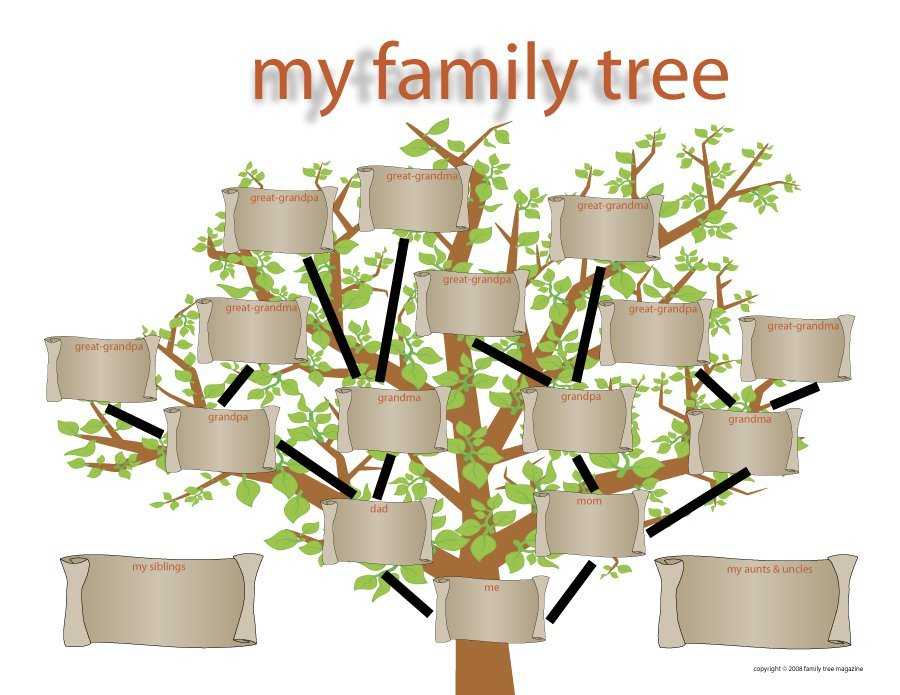 Семейное древо – это рисунок, отображающий родственные связи членов вашей семье в форме дерева и его веток. Шаблон родословного дерева отображает иерархическую структуру семьи, её историю, является наглядным выражением образа Рода. Кроме имени и фамилии родственников дерево часто включает дату их рождения и смерти, фотографии, другую справочную информацию.