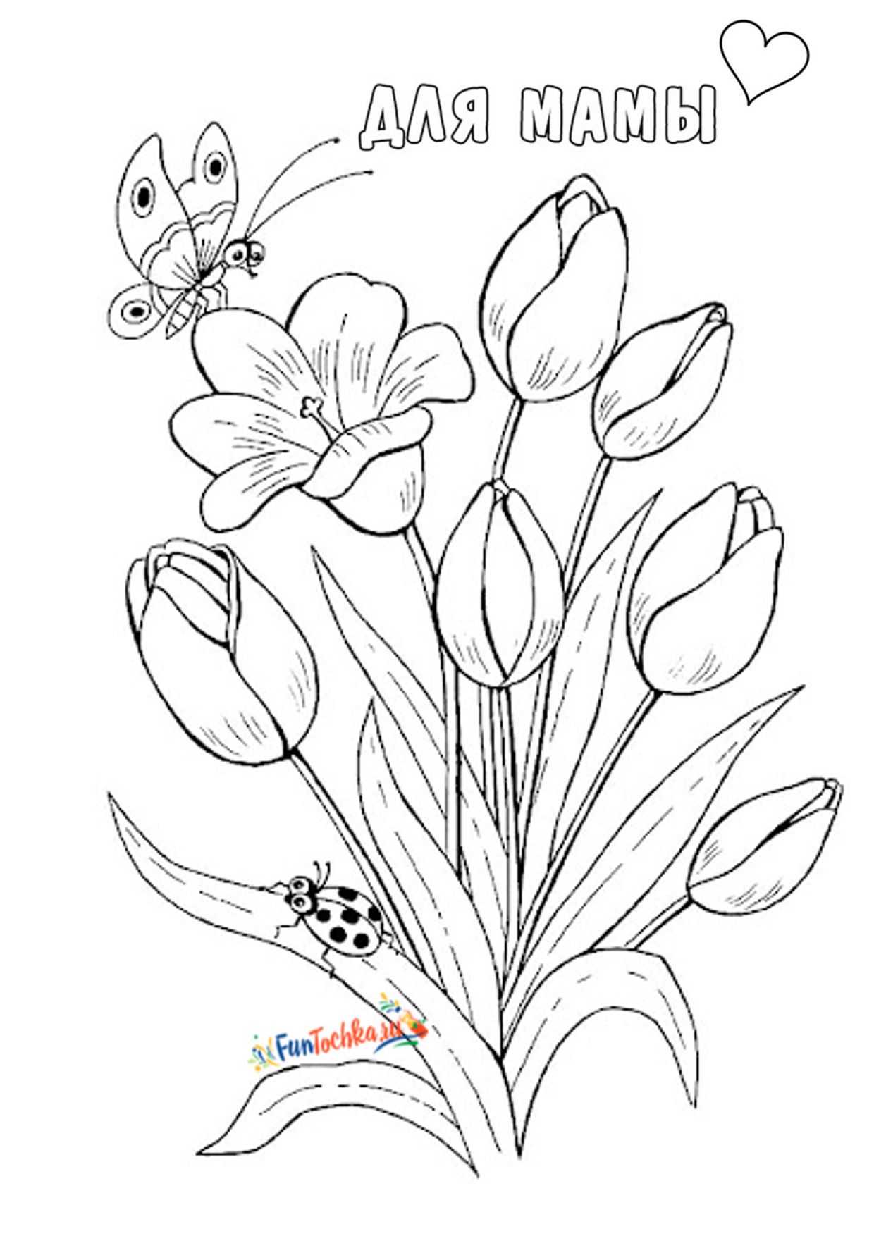 Красивые цветы на День матери — 12 раскрасок для детей разного возраста