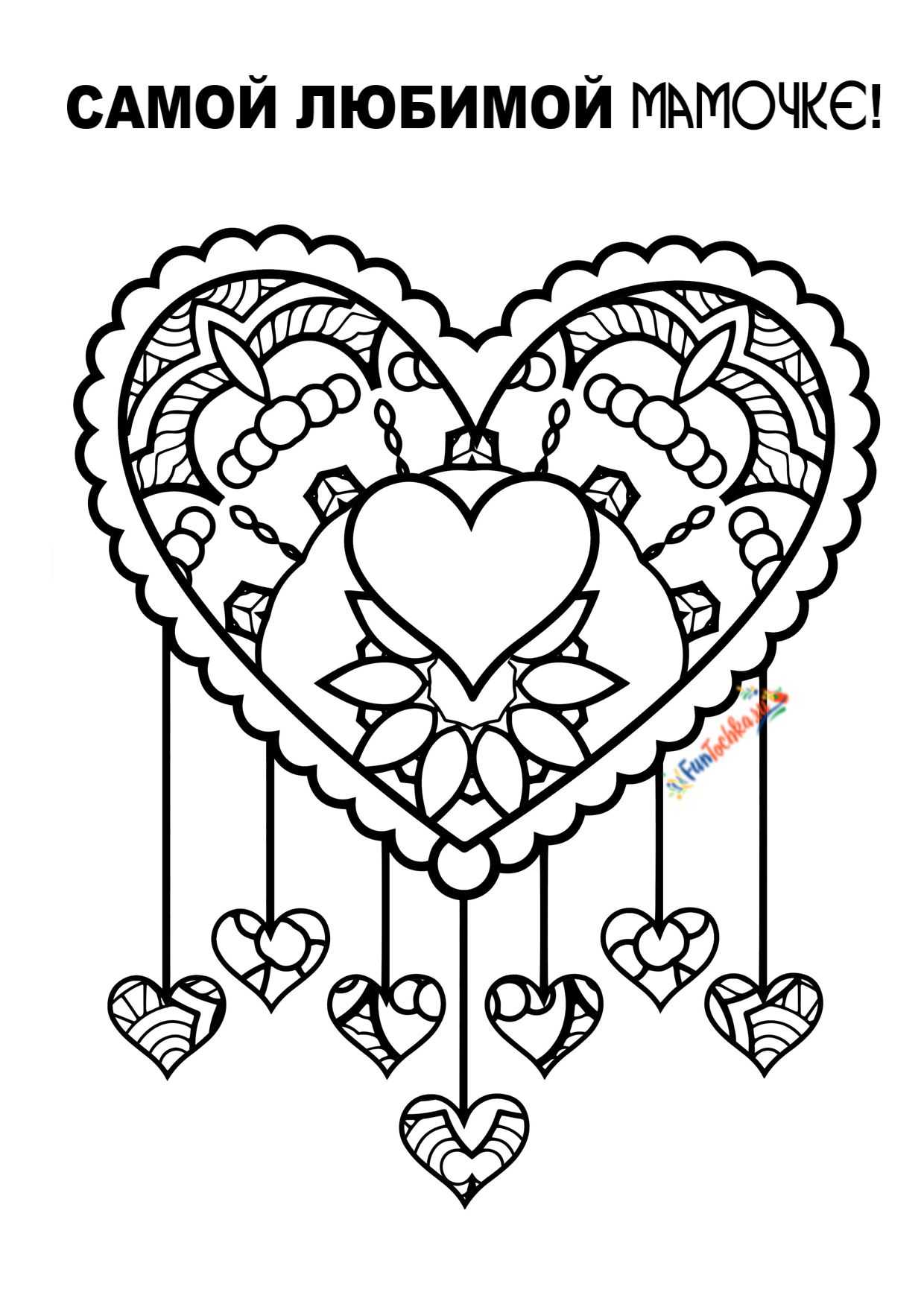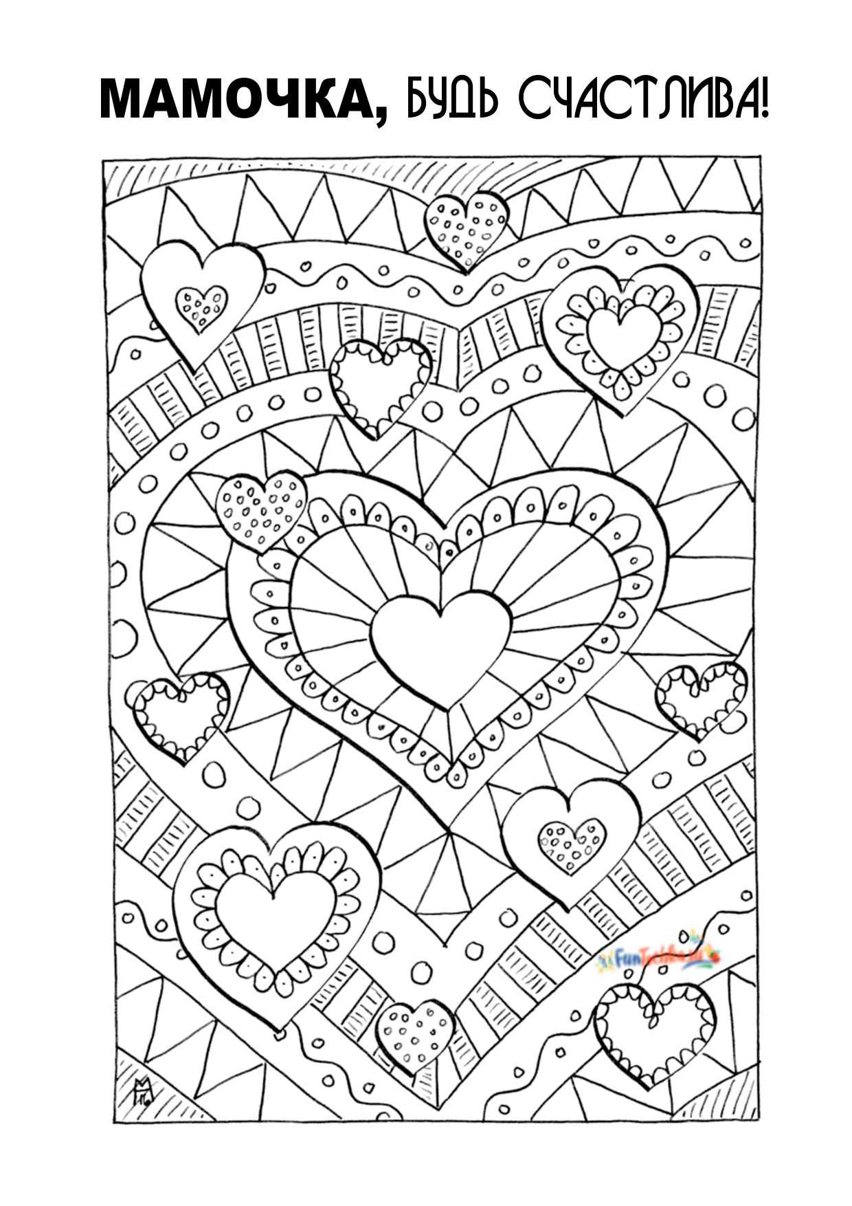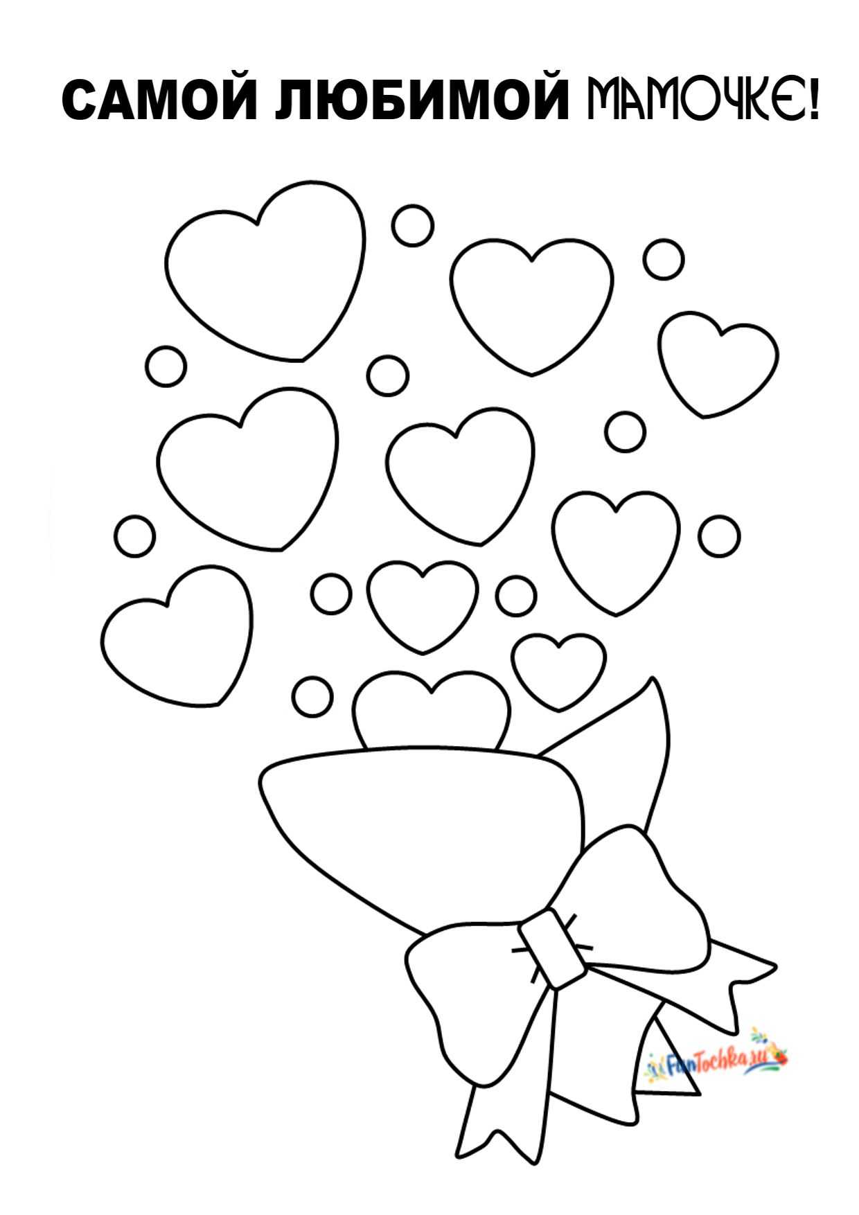 Вот несколько отличных и уже непростых шаблонов для поздравительных раскрасок на День матери, чтобы бесплатно порадовать маленьких художников.