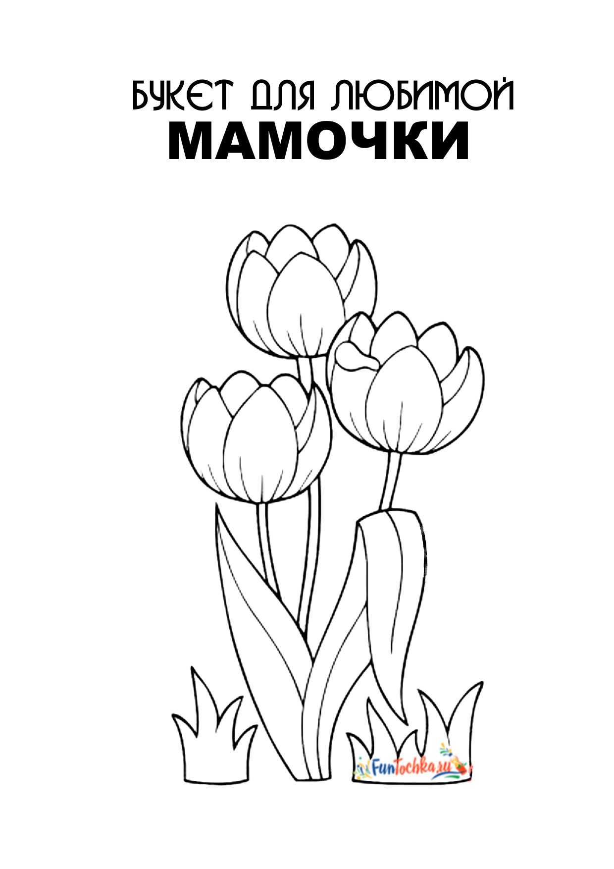 Тюльпаны, которые всегда напоминают о весне. А весна — о безграничной любви, а любовь — о главной женщине в жизни каждого. Вы уже видите, да? Какой красочный букет можно сделать из этой раскраски на День матери. Готовая к распечатке на листе А4 эта картинка ждёт вашего внимания!