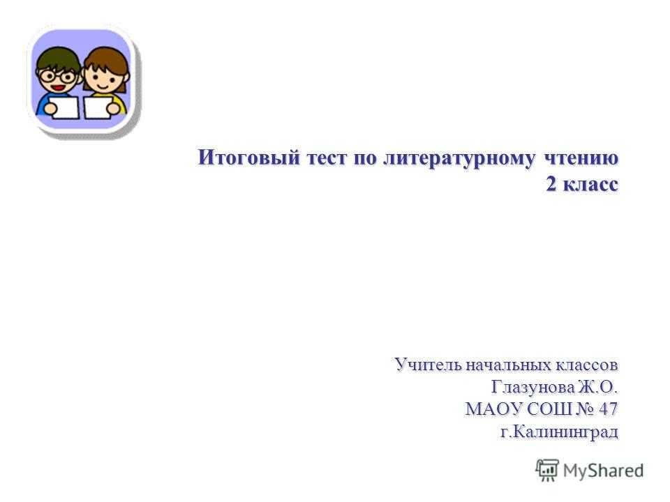 Презентация на тему: » Итоговый тест по литературному чтению 2 класс Учитель начальных классов Глазунова Ж.О. МАОУ СОШ 47 г.Калининград.» — Транскрипт: