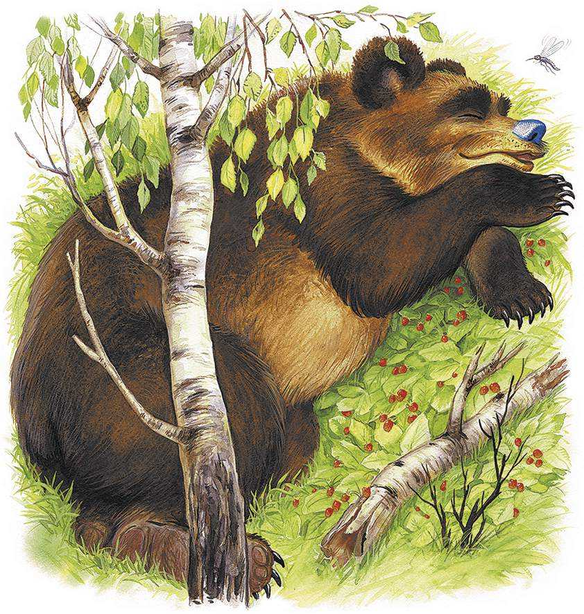 Лежит Медведь, не шевелится, притворяется, будто спит, а сам прислушивается, ждёт, когда Комар себе новое место для посадки выберет.