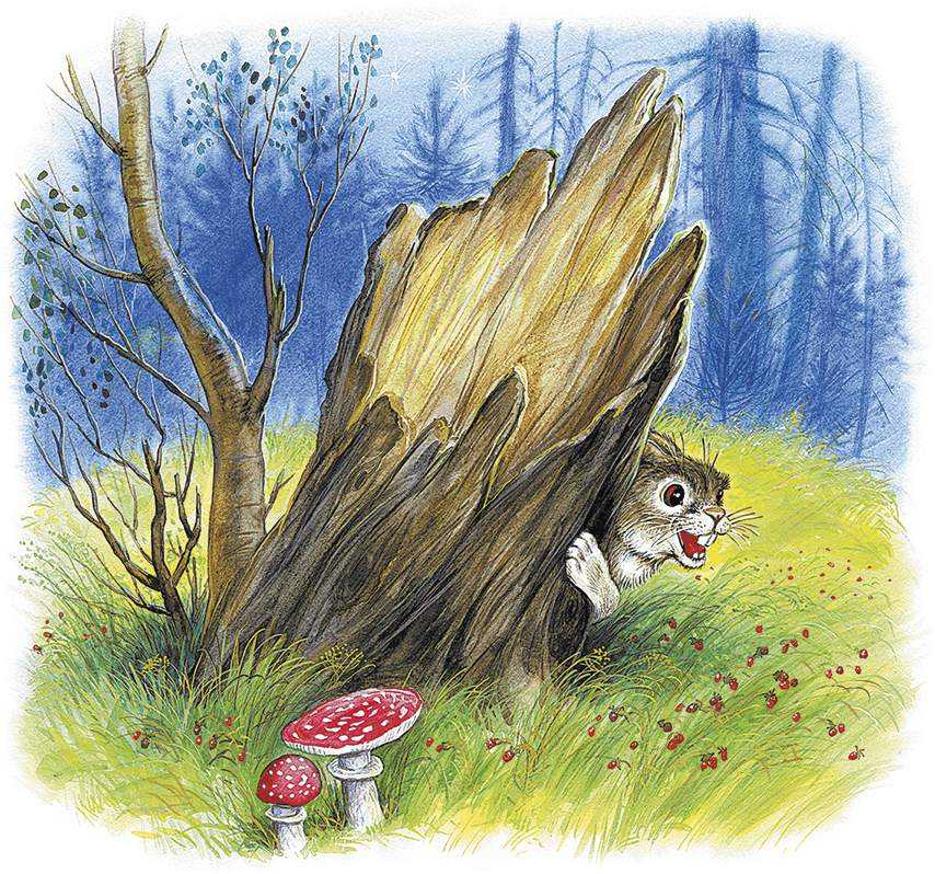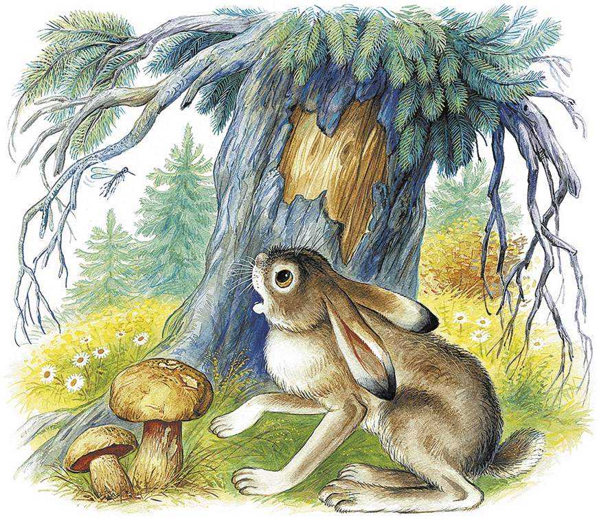 Выплакался Заяц, отошли у него уши, слезы высохли, а обида не прошла. За что пострадал? Не ровен час, опять на Косолапого налетишь! Этак ушей не напасёшься! А кому жаловаться, когда Медведь сильней всех в лесу? Волк с Лисой ему первые дружки-приятели, водой не разольёшь!