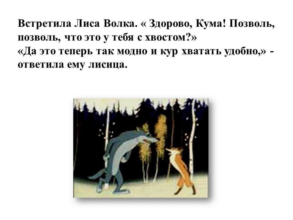Заволновались звери: «Хвосты? Какие хвосты? Для чего хвосты?» Лисичка-сестричка говорит: Ну, какие никакие, а раз дают, надо брать; после разберём, для чего они!