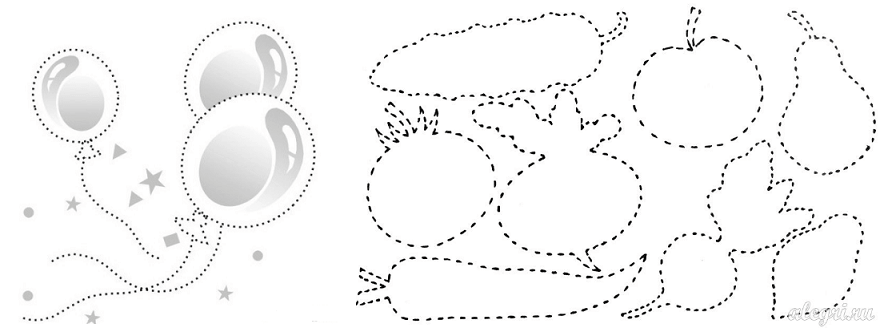 Детям в возрасте 3-5 лет можно распечатать картинки, которые они смогут соединить. Это будет интересным заданием для них. Зачастую такие картинки имеют два задания: соедини и раскрась. Если у родителей нет возможности распечатать картинки, можно их нарисовать самостоятельно, но мы рисуем не так точно как компьютер, особенно всякие фигуры, овощи и т.п.