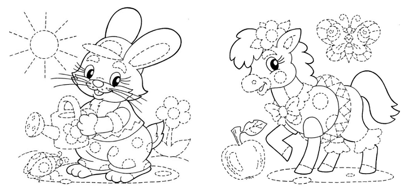 Мелкая моторика еще неуклюжих детских пальчиков нуждается в постоянной тренировке. Кроме того моторика во многом влияет на развитие головного мозга, особенно центра, отвечающего за речь и мышление. Подходящие упражнения для развития этих навыков ― копирование рисунка по предложенному шаблону.