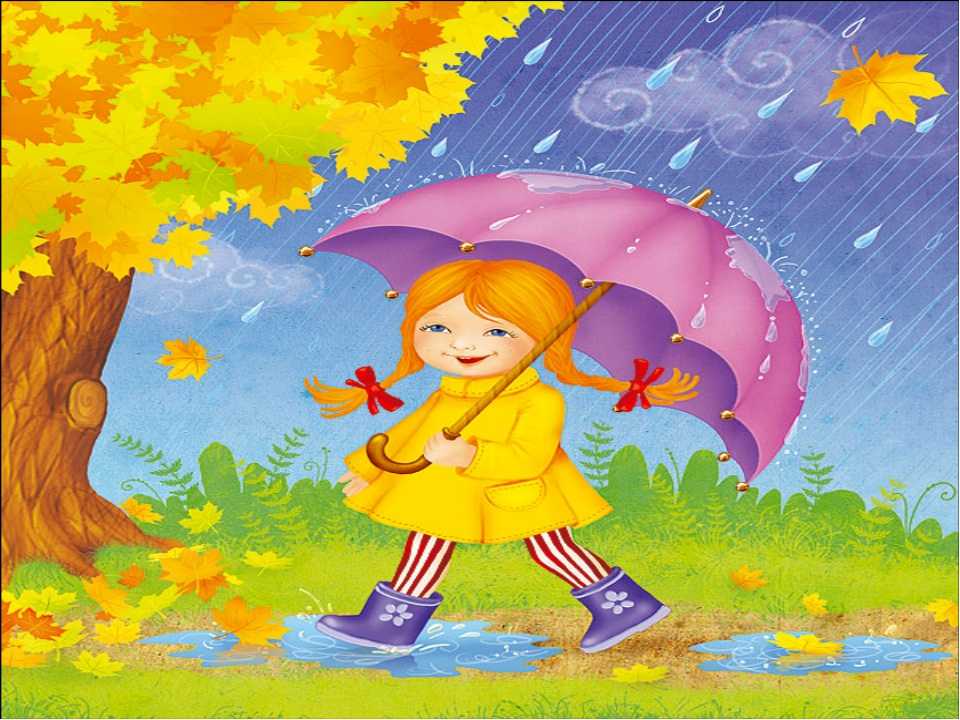Дождь по улице идет,Мокрая дорога,Много капель на стекле,А тепла немного.Как осенние грибы,Зонтики мы носим,Потому что на двореНаступила осень.(В.Семернин)