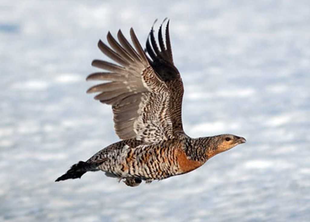Зимний полет самки глухаря.