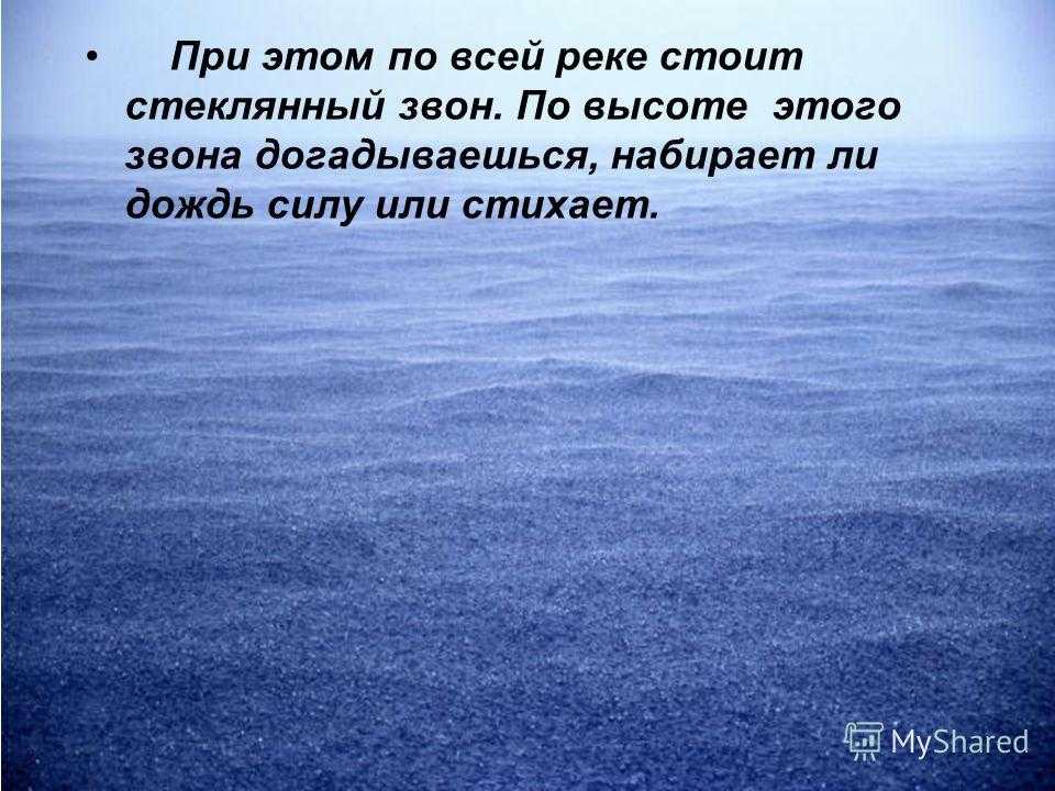 При этом по всей реке стоит стеклянный звон. По высоте этого звона догадываешься, набирает ли дождь силу или стихает.