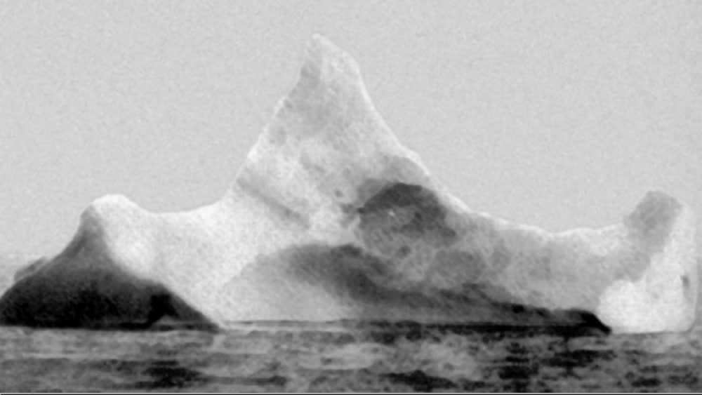 Тот самый айсберг, который проделал в корпусе «Титаника» 100-метровую пробоину. Фотограф с другого судна заметил длинную полосу красной краски на айсберге