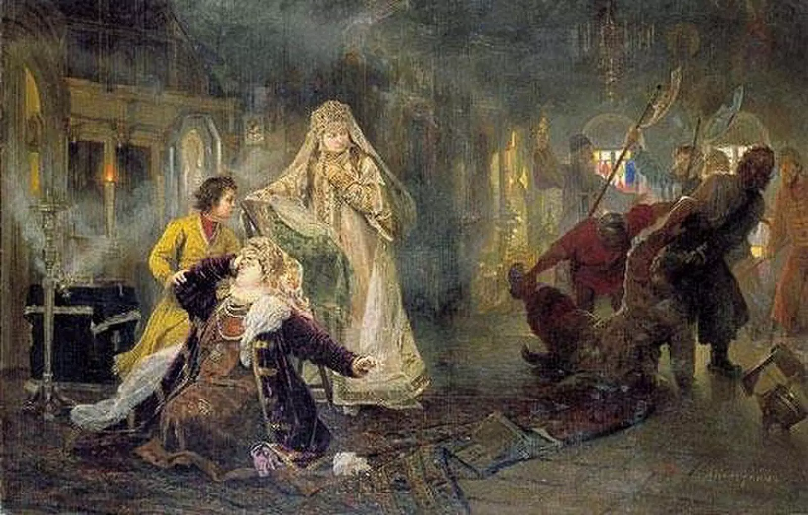 Это мгновенно разрушило хрупкую возможность достижения компромисса. Взбешенные стрельцы сбросили ненавистного начальника на копья и тут же изрубили в куски. А следом пришел черед и Матвеева. Наталья Кирилловна вместе с царевичами буквально вцепилась в боярина, пытаясь не выдать его на растерзание.