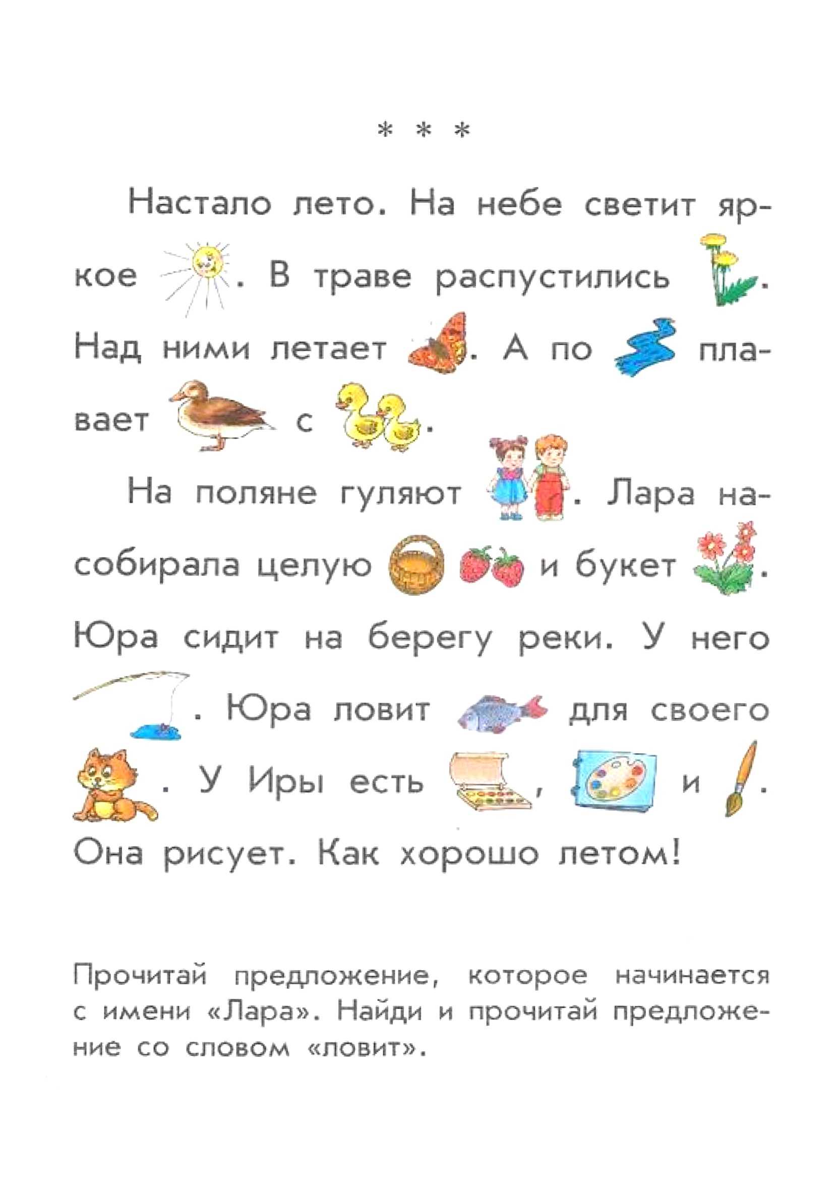 Если первый раз читаем по слогам, тексты для чтения должны состоять из 1-2 предложений. Слова используйте небольшие, из 1-2 слогов. Карточки можно подготовить самостоятельно, найти в сети и напечатать.