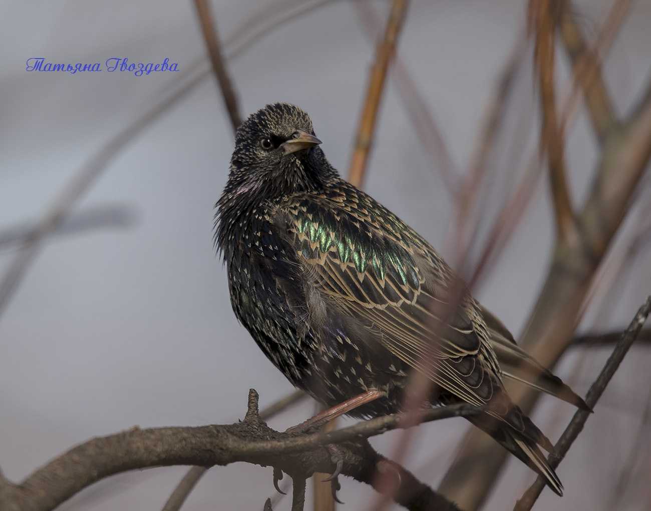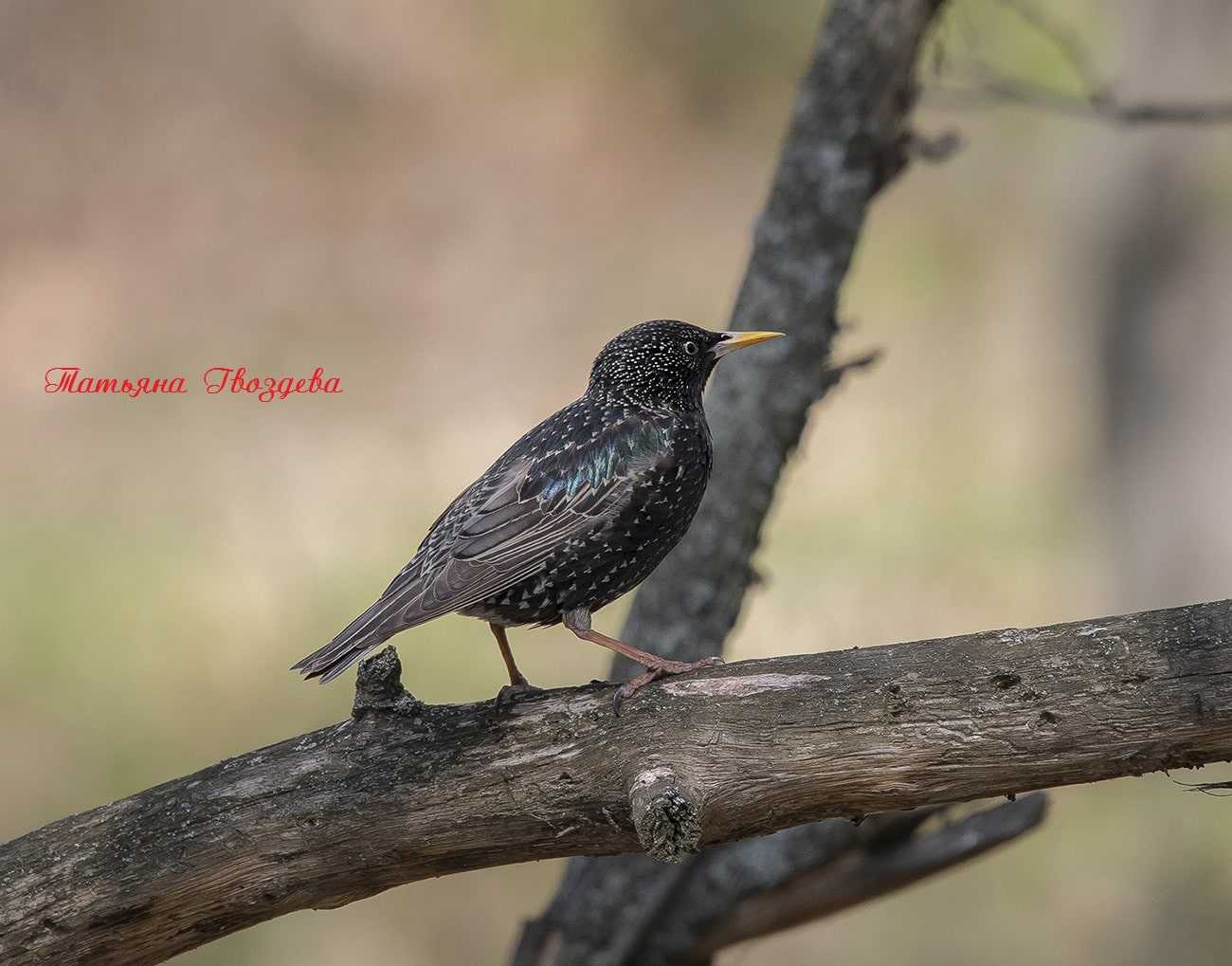 Скворец — крупная, красивая птица с блестящим черным оперением.