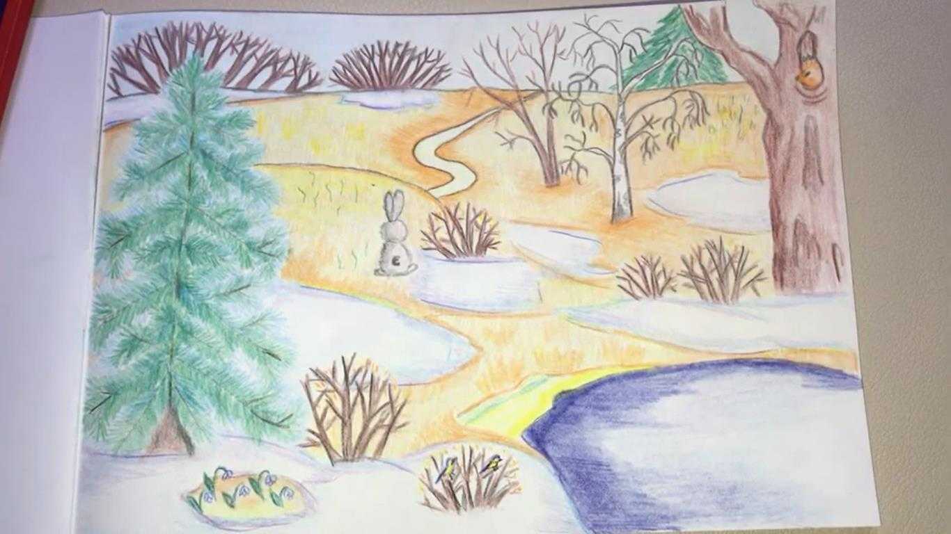 Весенний пейзаж: поэтапный рисунок цветными карандашами