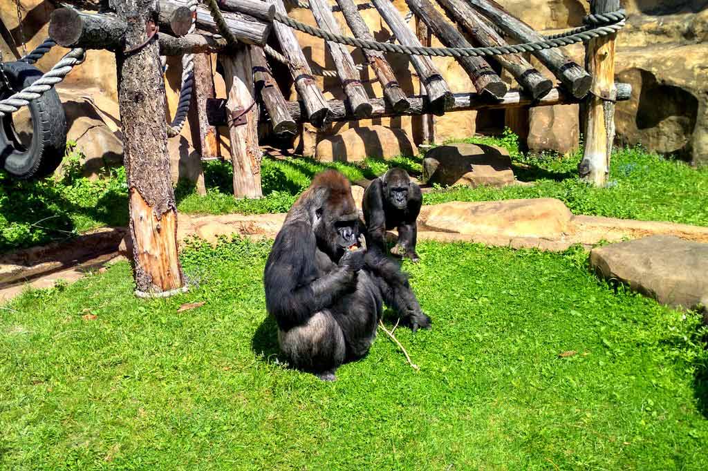 Но вот где было веселее всего, так это в царстве обезьян. Маленькие мартышки ловко перепрыгивали с ветки на ветку, раскачивались, повиснув на одной руке, строили мордочки посетителям зоопарка.